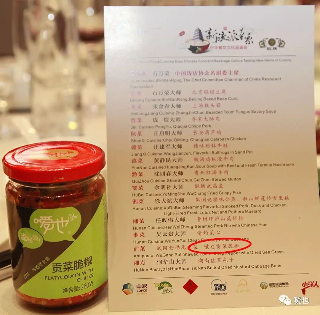 本次品鉴会邀请了湘、赣、鄂、晋、京、吉、陕、滇、黔等烹饪大师与会,与会大师对大会“指定品鉴凉菜”嗳也·贡菜脆椒给予高度评价,并与嗳也总经理杨少军先生合影留念。